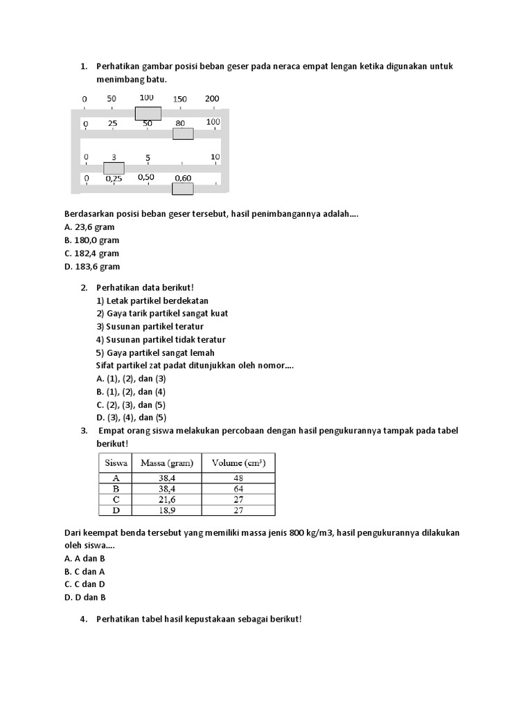 Perhatikan Gambar Posisi Beban Geser Pada Neraca Empat Lengan Ketika Digunakan Untuk Menimbang Batu from imgv2-2-f.scribdassets.com • alat yang digunakan untuk mengukur massa suatu benda adalah neraca.• jenis neraca antara lain : Neraca dacin merupakan alat yang digunakan untuk menimbang sesuatu, berupa tongkat yang diberi skala dilengkapi dengan anak timbangan dan tempat meletakkan barang yang akan. Lengan satu digunakan untuk meletakkan benda atau logam yang akan ditimbang, lengan dua untuk meletakkan bobot timbangan. Gambar 1.9 neraca tiga lengan. Neraca ohauss, neraca pegas, neraca sama lengan, timbangan duduk, timbangan lengan gantung, neraca lengan tuas, dan neraca digital (elektronik). Timbangan duduk umumnya digunakan oleh pedagang pasar atau ditoko untuk menimbang sembako. Jenis neraca yang sering digunakan di laboratorium adalah neraca yang memiliki tiga lengan berskala yang dilengkapi dengan beban geser, seperti ditunjukkan pada gambar 1.9. Neraca ini memiliki tingkat ketelitian 0,001 gram.